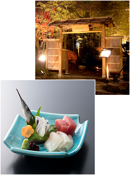 魚介類や農作物の収穫は四季に添っており、我々のからだもまた、季節に合わせて変化しています。それゆえに「会席料理」は四季と切り離すことは出来ません。1年を通して一番美味しく、栄養価が高い『旬』の、そして地元の食材を摂ることが自然の摂理に合っています。だから、積極的に近隣の産地を中心に素性のしっかりした旬の食材を取り入れております。旬の恵みを満載した明月記の「会席料理」と店舗の周りの自然と店内からの眺望で、季節のうつろいをお楽しみください。