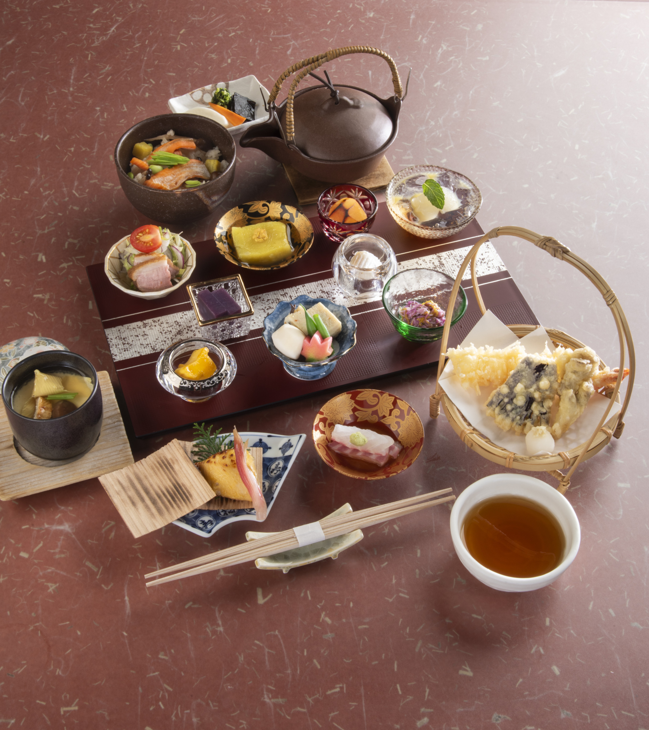 伝統の技と匠の仕事をふんだんに盛り込んだ会席料理。