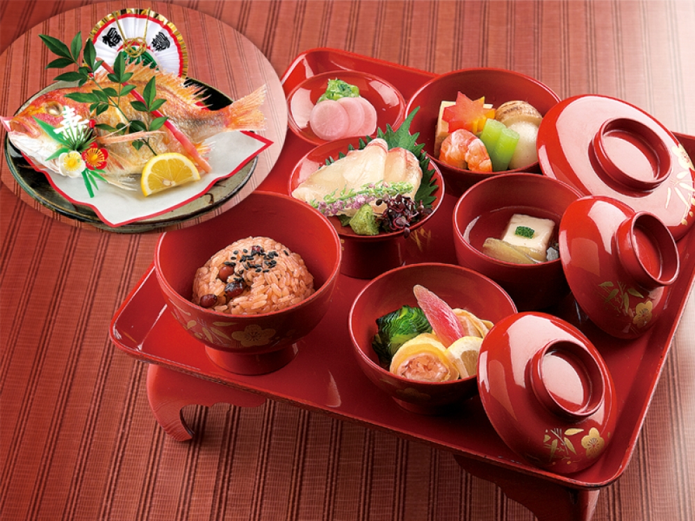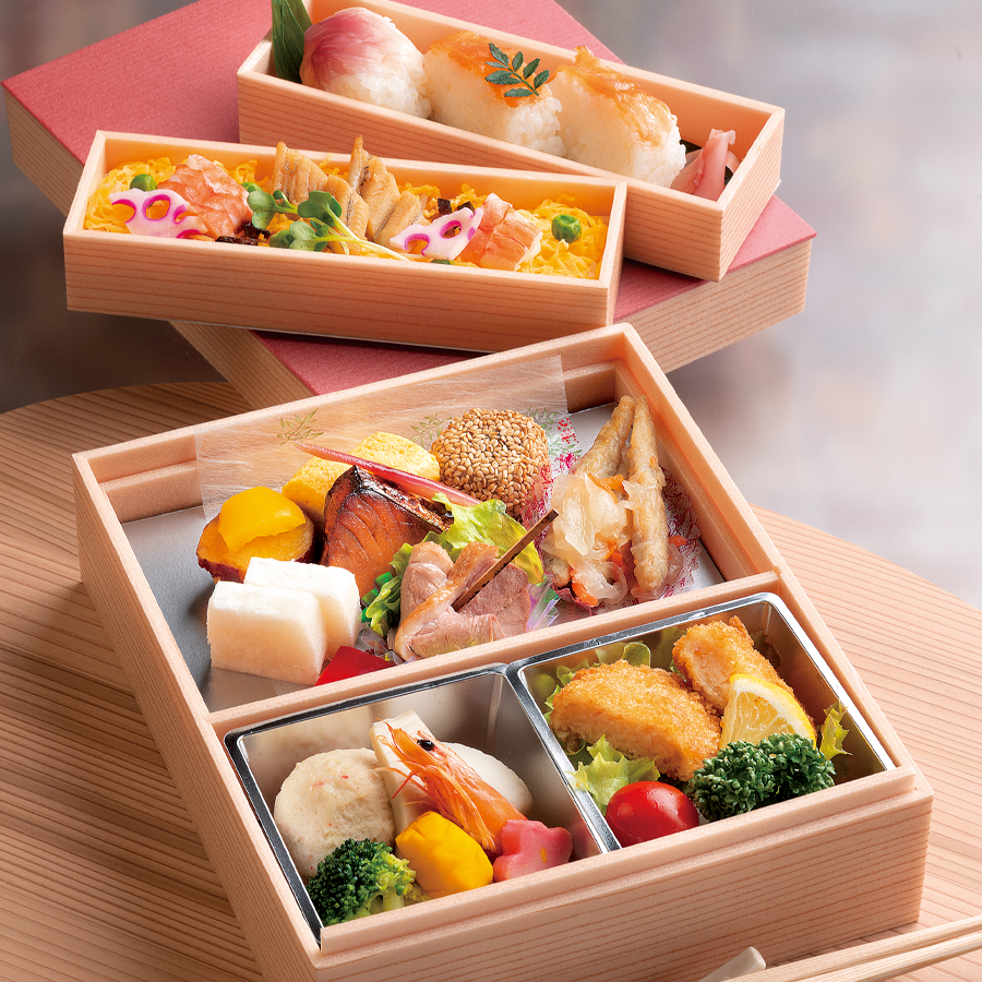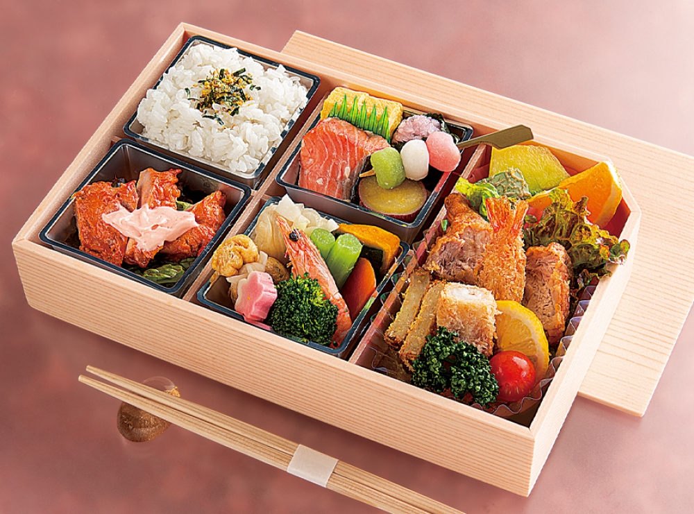 仕切りのそれぞれに刺身、焼き物、煮物、飯などを見栄え良く配置する。昭和の初めごろから始まったとされる和食でおもてなし料理を振舞う際に使われるお弁当形式の盛付。